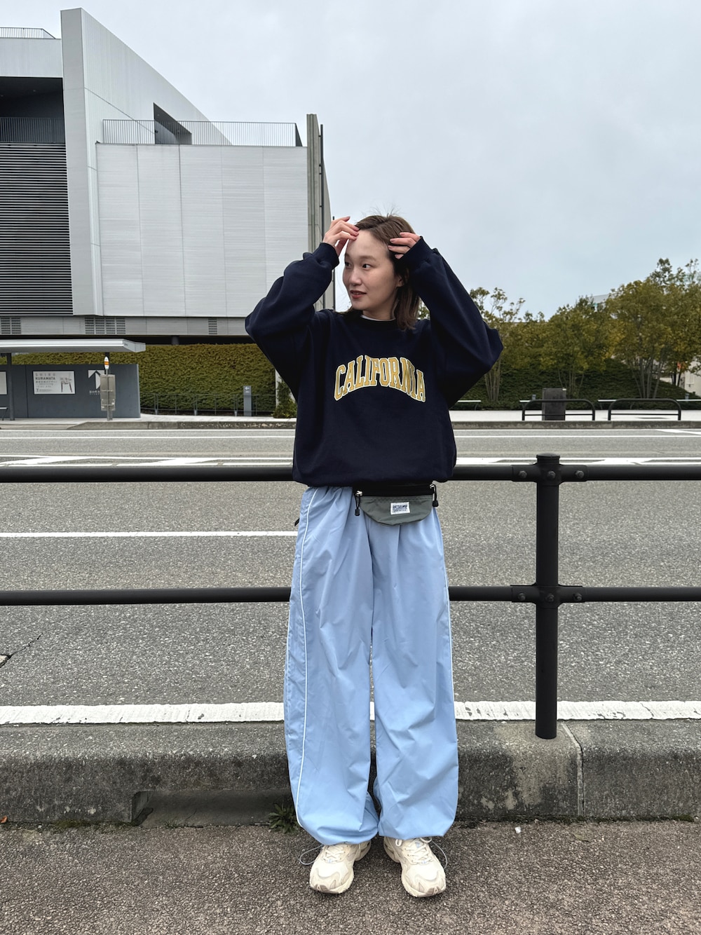 春カラーのナイロンパンツをポイントに🩵 🐰🌸Instagram →m_ooo