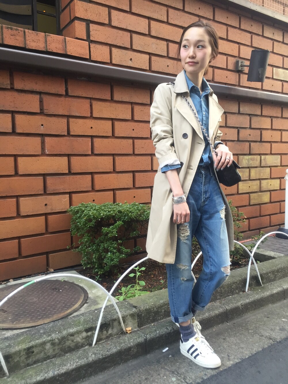 今年の春気になるデニム オン デニムのスタイルに、トレンチを合わせて春らしく◎ mio blog→http://ur-blog.jp/ur/?sid=mio mio Instagram →M_OOO