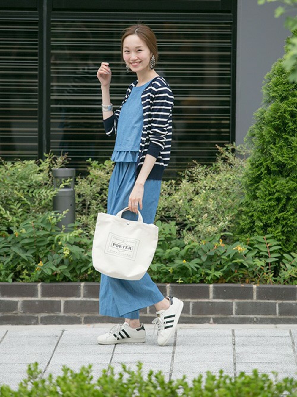 トレンドのデニムをオールインワンで◎落ち着いたカラーのボーダーカーディガンを合わせて子供っぽくならないように。 mio blog→http://ur-blog.jp/ur/?sid=mio mio Instagram →M_OOO