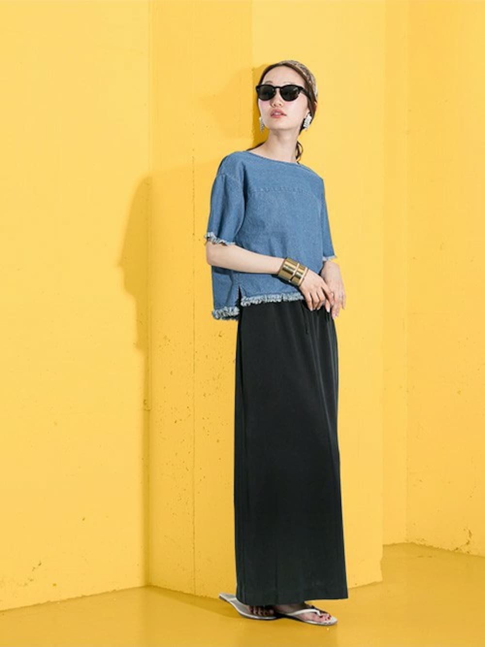 mioのその他トップス「UR デニムフリンジ プルオーバー」を使ったコーディネート