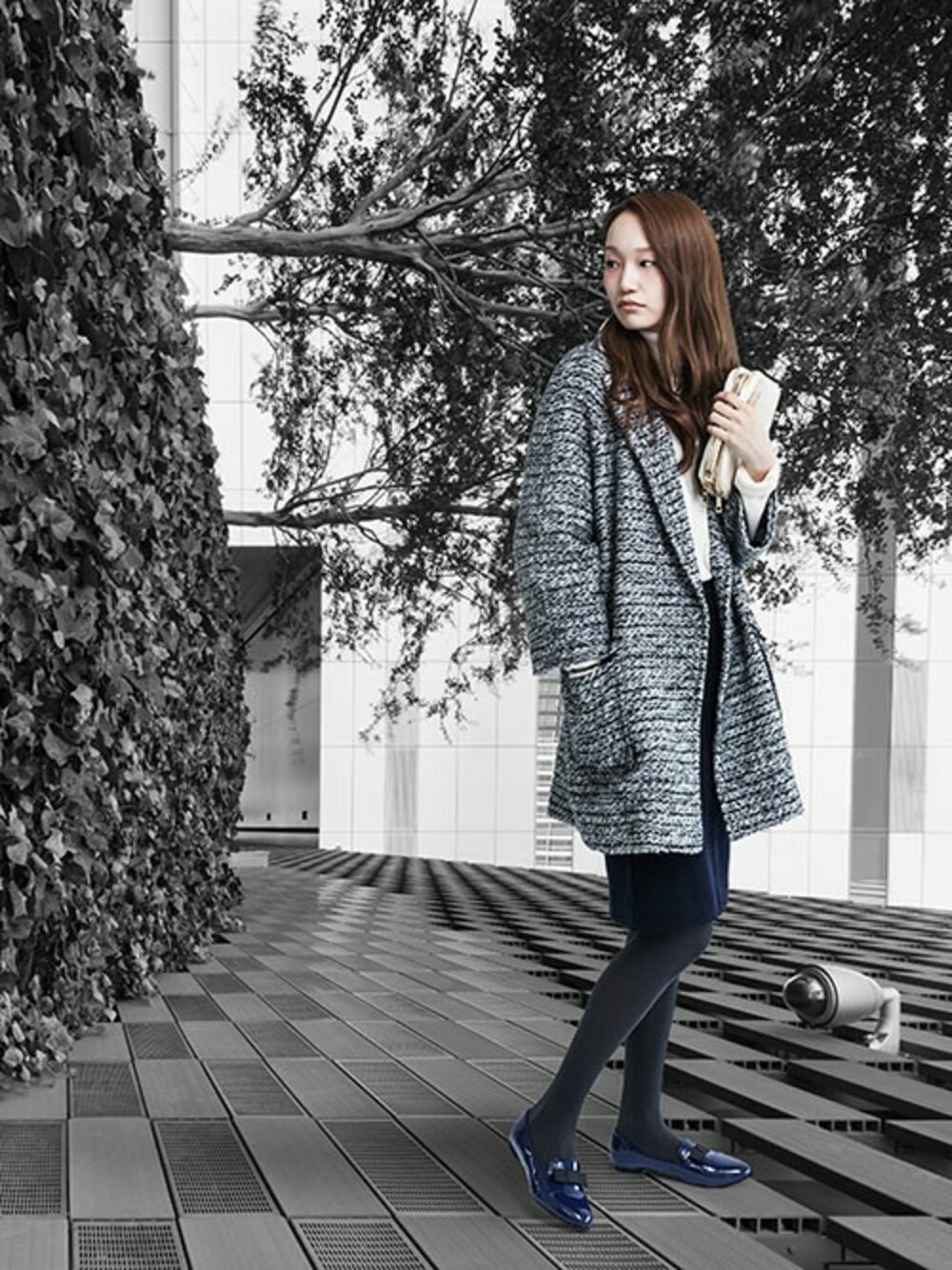 最新モードのビックシルエットコートを、品の良いスタイリングで。