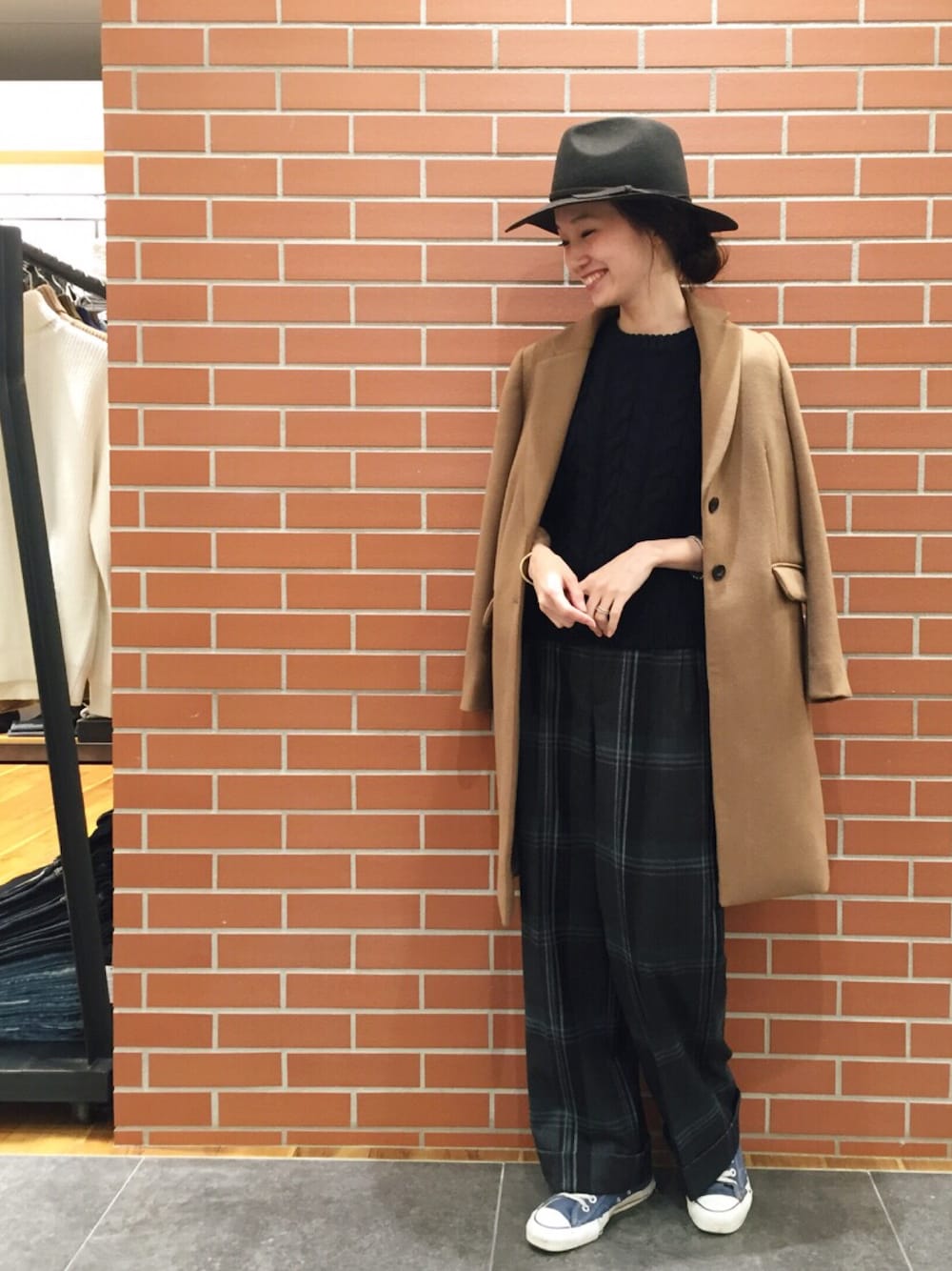 チェスターコートにチェック柄ワイドパンツを合わせて、マニッシュなスタイルに◎ mio blog→http://ur-blog.jp/ur/?sid=mio mio Instagram →M_OOO