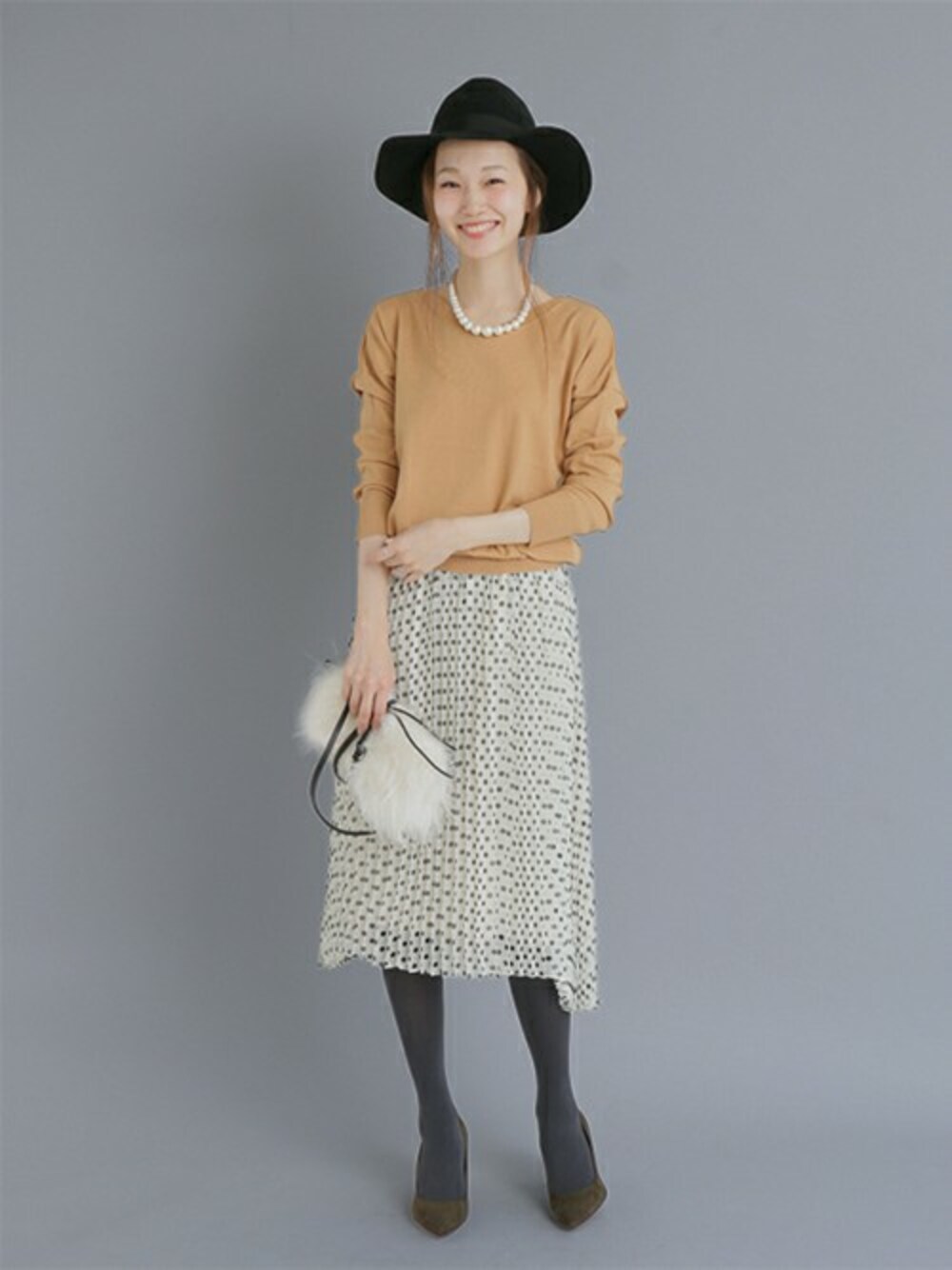 プリーツスカートに2WAYニットを今回はクルーネックで。パールのアクセでシンプルコーデにアクセントを加えました◎ mio Instagram →M_OOO mio blog→http://ur-blog.jp/ur/?sid=mio
