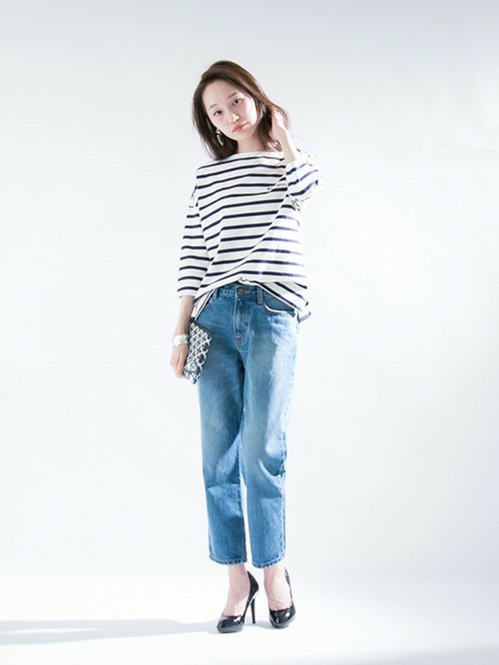 champion別注モデルのボーダートップスをシンプルにデニムスタイルで。 お気に入りのBY MALENEのポーチをクラッチ代わりにしました◎ mio Instagram →M_OOO mio blog→http://ur-blog.jp/ur/?sid=mio