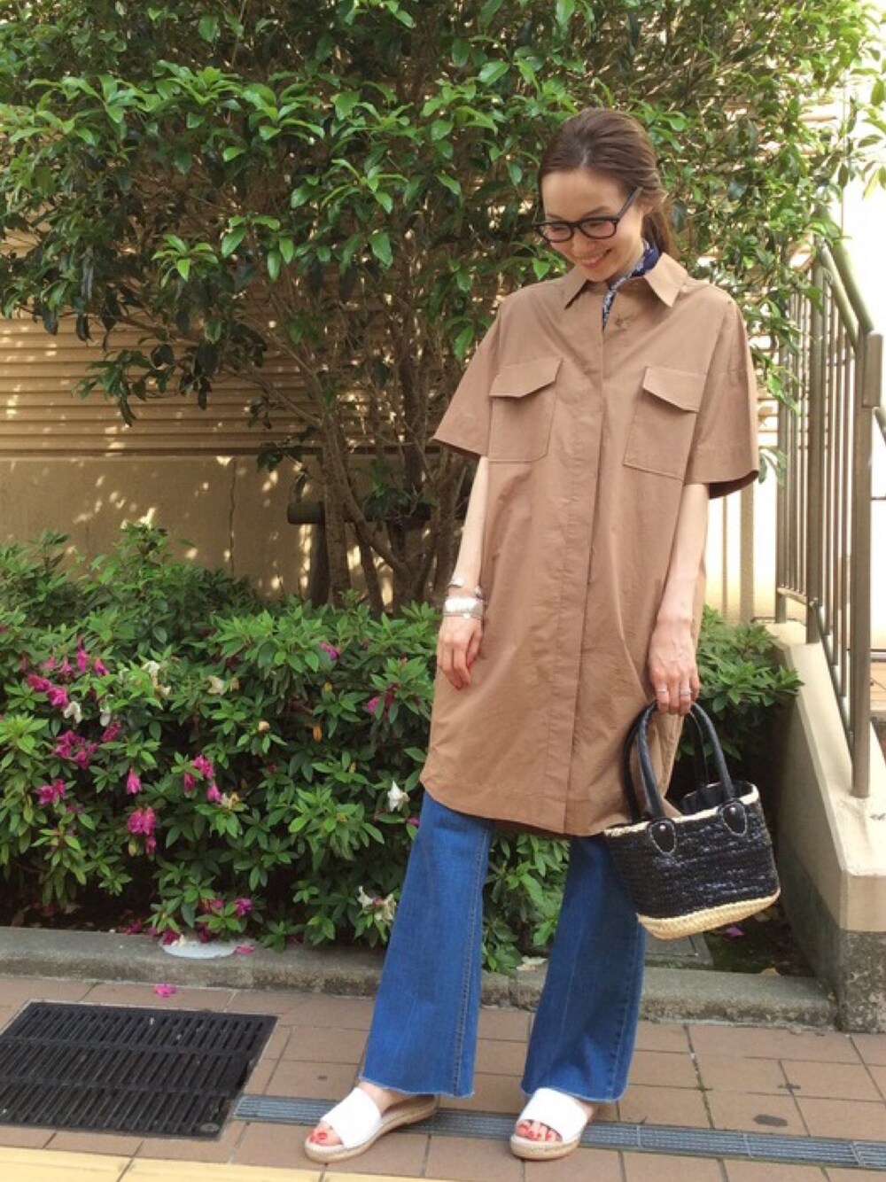 ハリ感のあれシャツワンピースに、カットオフのデニムパンツを合わせてカジュアルに。 首元にスカーフを巻いて今年らしく。 mio blog→http://ur-blog.jp/ur/?sid=mio mio Instagram →M_OOO