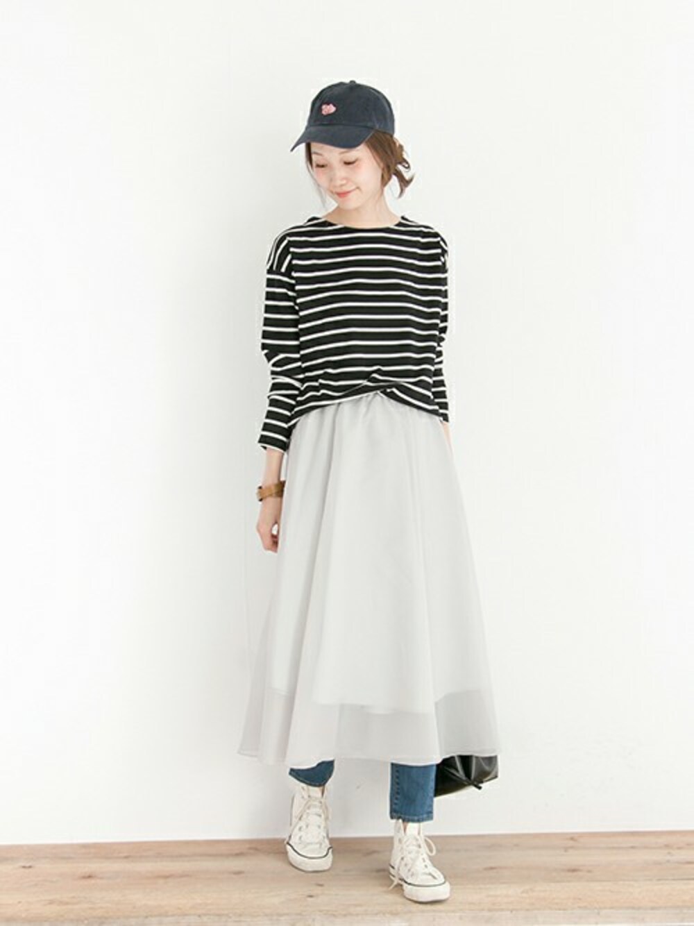 女性らしいオーガンジースカートをレイヤードスタイルでカジュアルダウン◎ mio Instagram →M_OOO mio blog→http://ur-blog.jp/ur/?sid=mio