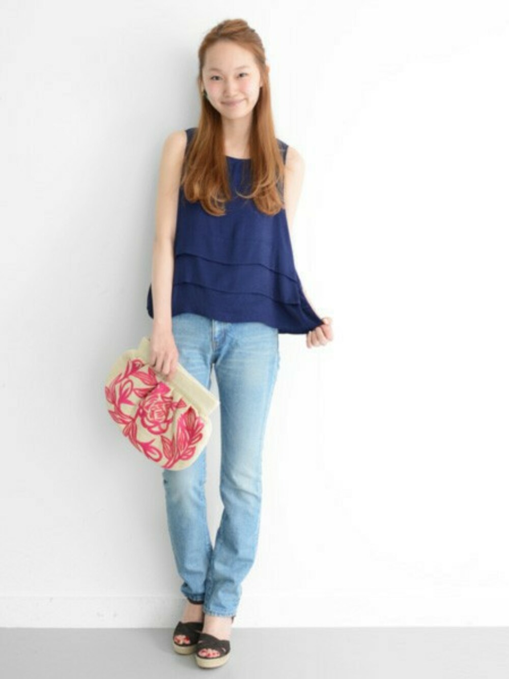 今年はだんぜんノースリーブが気分です。上からパーカーを羽織っても可愛いですが、一枚で着ても可愛いティアードのブラウスを主役にしたシンプルスタイルです。