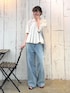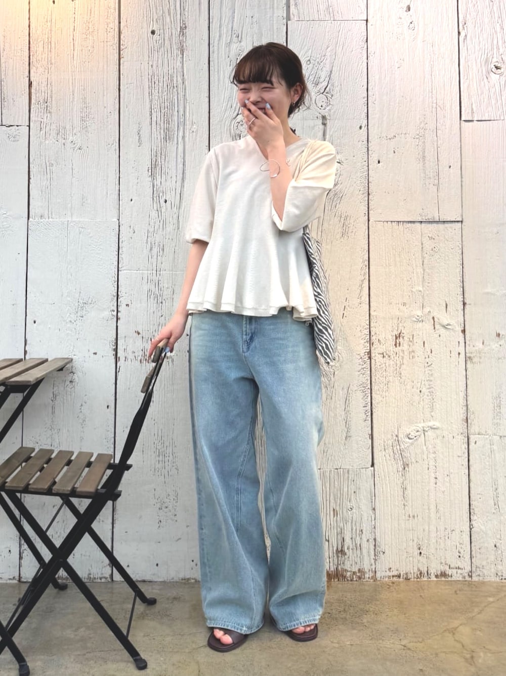 1枚で着映えるペプラムニット! 甘めコーデが苦手な私は、ワイドデニムと合わせて カジュアルにシフト。 シルエットも綺麗で、肉感も拾わない! 真夏にもぴったりなサラサラした素材感でロングシーズン着られそうです◎