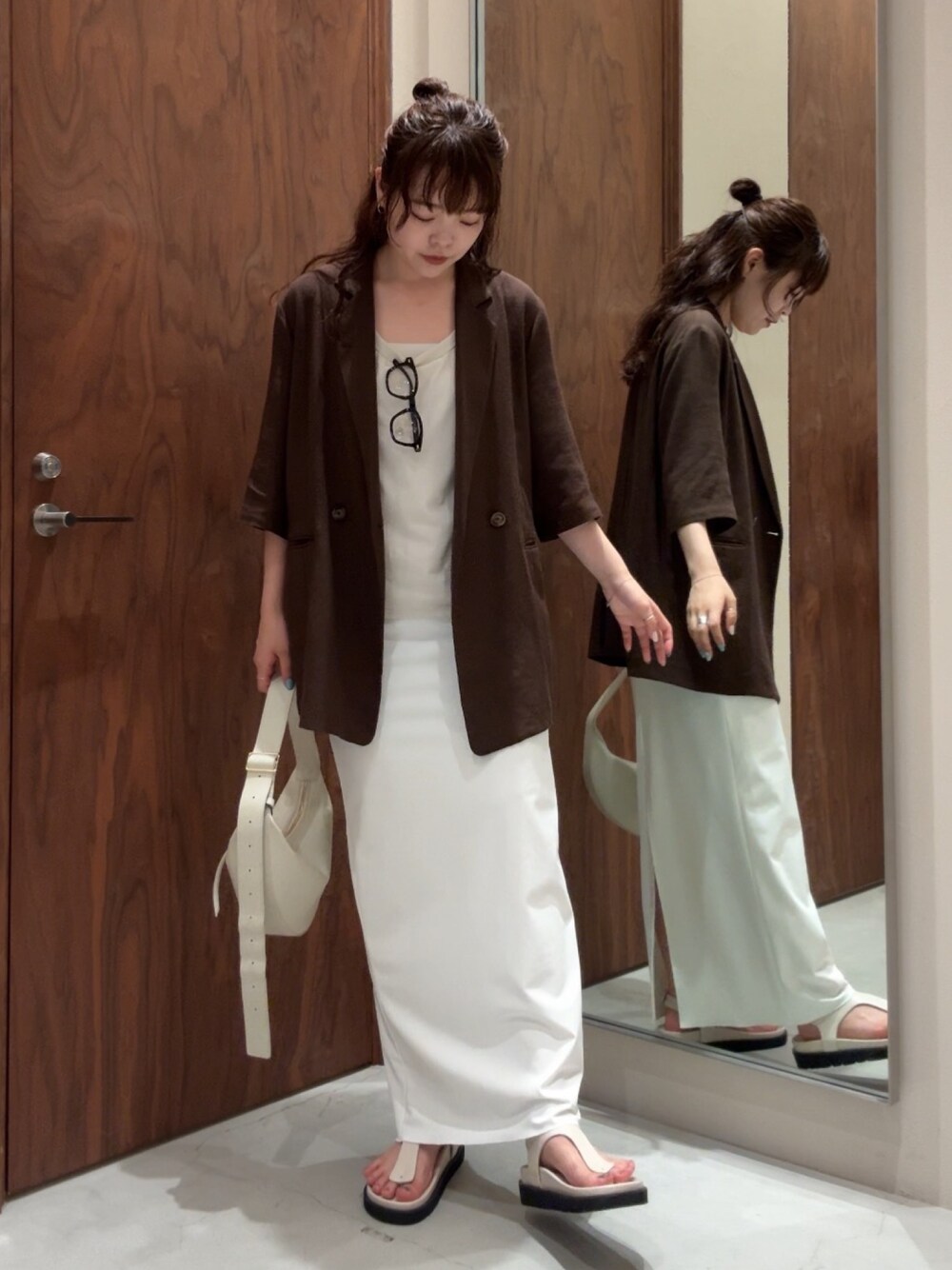 タイトスカートを使ったカジュアルコーデ◎ ジャケット以外のアイテムを明るめワントーンでまとめることで、ジャケットを主役に✨ _______________ Instagram → @_manaka_a_ お問い合わせは、 InstagramのDMまで✉️ _______________