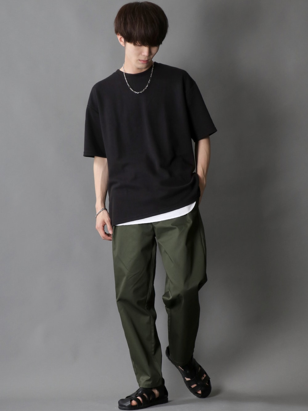 狩野 博文のチノパンツ「One tuck Twill chef pants/別注 ワンタック ワイドテーパードパンツ/イージーパンツ/シェフパンツ/カラーパンツ/スケーターパンツ」を使ったコーディネート