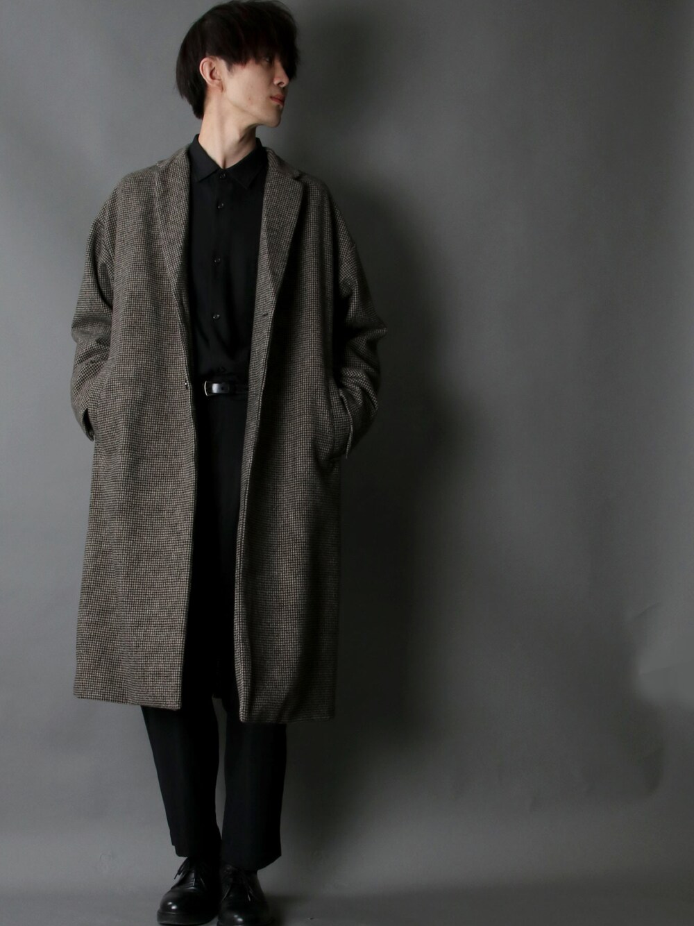狩野 博文のチェスターコート「SITRY Wool Chester Coat/別注 オーバーサイズ ウール ブリティッシュチェック ダブルブレスト チェスターコート/ステンカラーコート/レディース メンズ」を使ったコーディネート