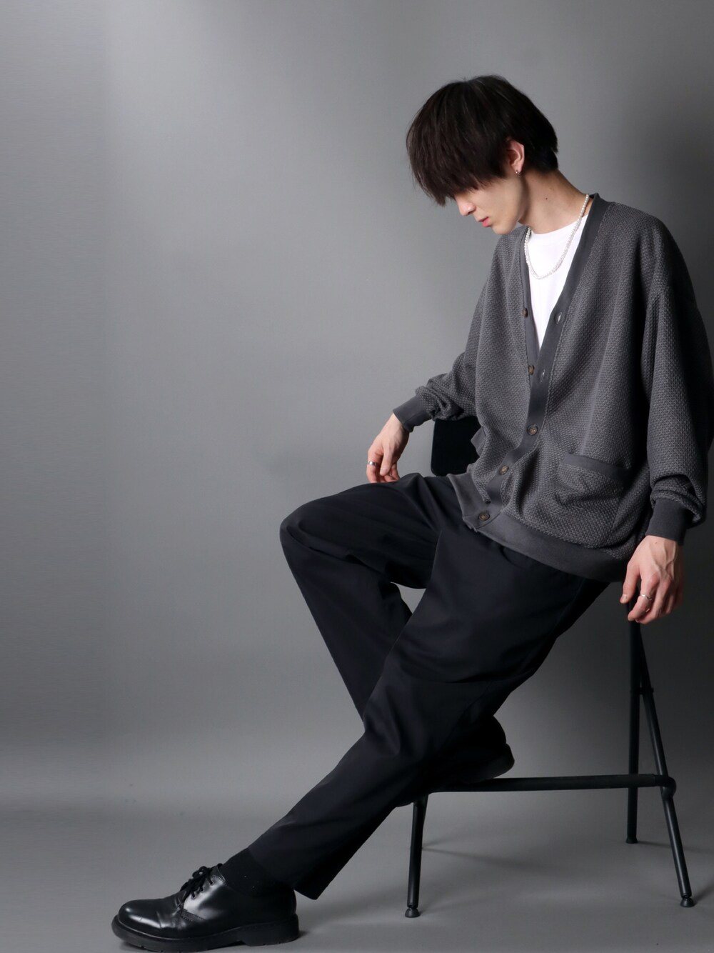 狩野 博文のカーディガン/ボレロ「Big silhouette Knit sew Cardigan/ビッグシルエット ニットソー カーディガン/カーデ」を使ったコーディネート