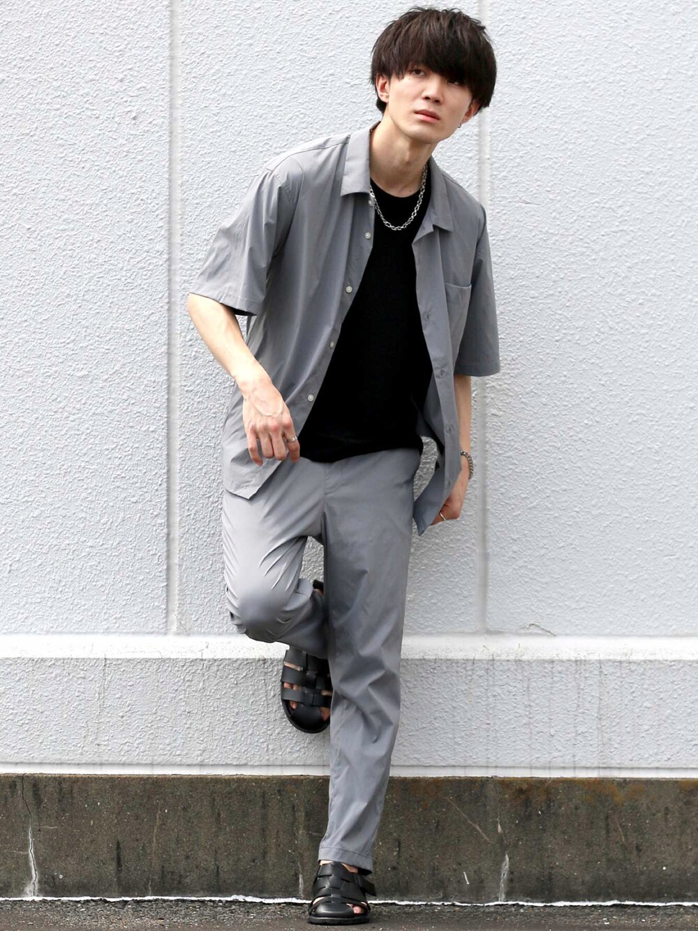 狩野 博文のセットアップ「ドレープストレッチ レギュラーカラーシャツ&テーパードパンツ セットアップ」を使ったコーディネート