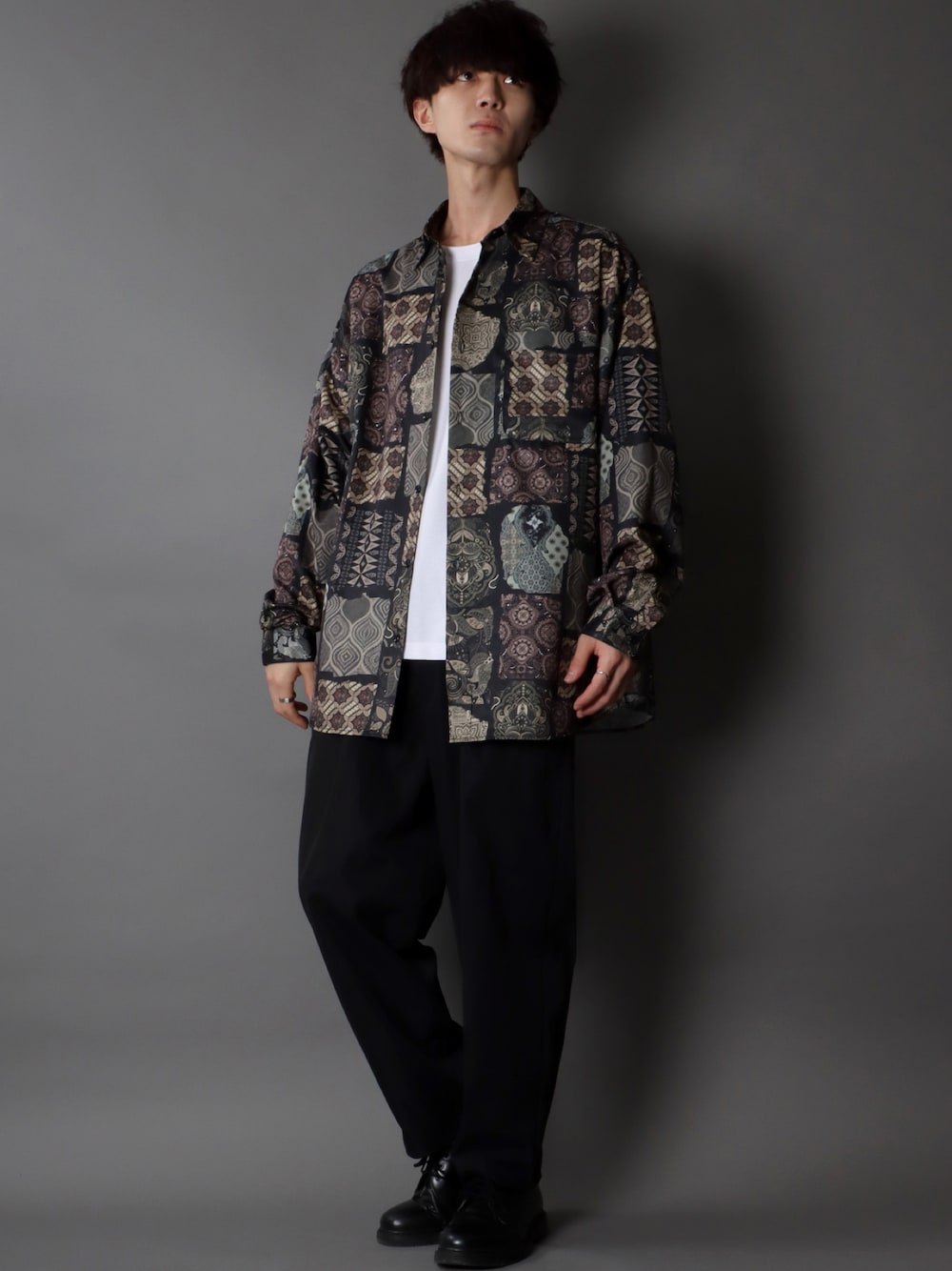 狩野 博文のシャツ/ブラウス「Oversize Drop shoulder print shirt/オーバーサイズ ドロップショルダー プリントシャツ」を使ったコーディネート