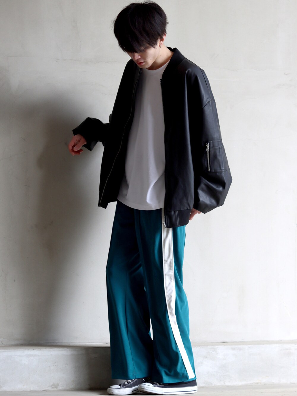 狩野 博文のMA-1「【別注】oversize synthetic leather MA-1/オーバーサイズ フェイクレザー MA-1」を使ったコーディネート