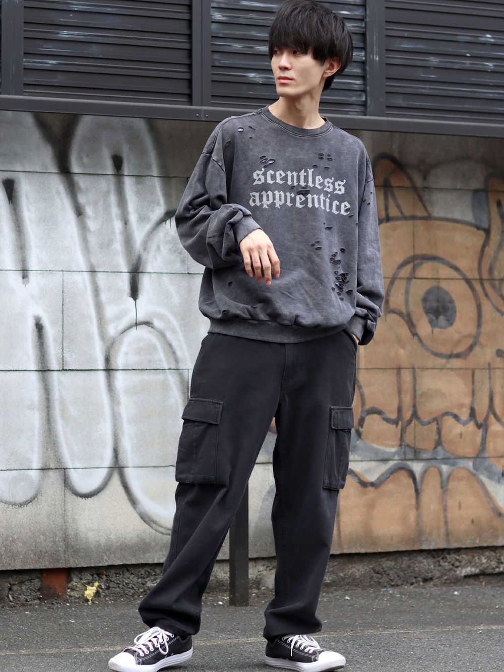 狩野 博文のスウェット「sulfur dyeing damage sweatshirt/硫化染め ダメージスウェットシャツ/トレーナー」を使ったコーディネート