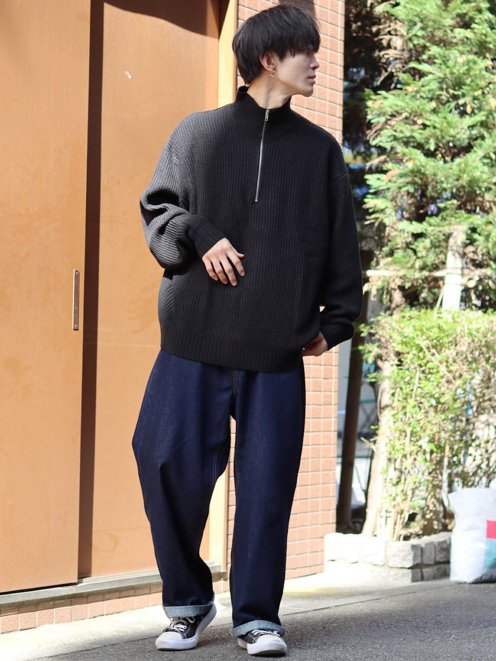 狩野 博文のニット/セーター「ridge knitting half zip sweater/畦編み ハーフジップ セーター/ニット」を使ったコーディネート