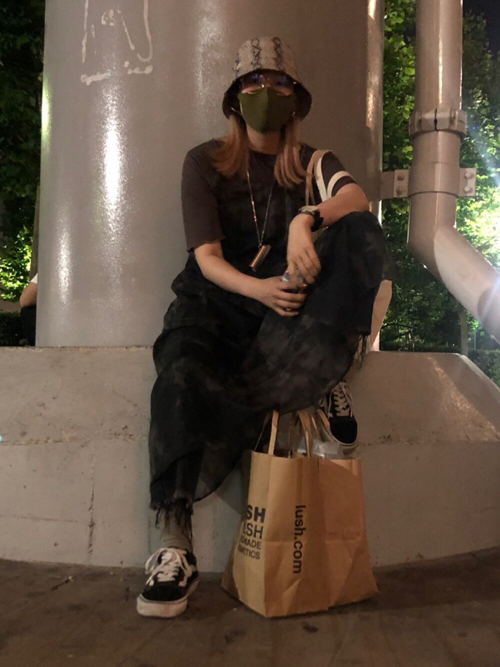 waoのワンピース「シースルーアシメムラ染めロングキャミワンピース」を使ったコーディネート