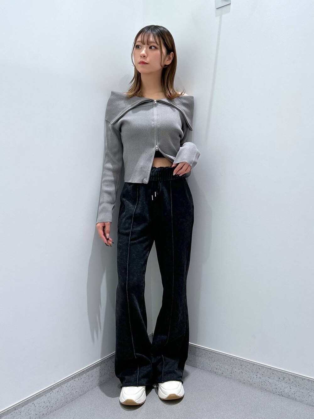 [ボトム] フレアのスウェットパンツ🖤 低身長さんは少し長めなので厚底をあわせるか、ウエストがゴムなので折っても形が綺麗なまま履けちゃいます⭐️