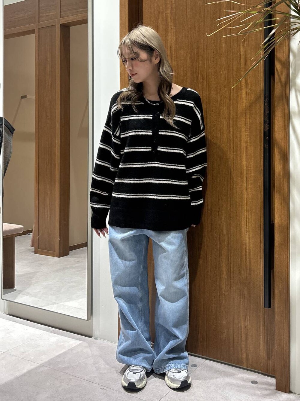 [トップス] 前後2wayで着られるニット🖤 薄手なので春先にもピッタリですよ✨ [ボトム] ワイドなのでジャストサイズでもワンサイズあげても可愛く履いていただけますよ🫶🏻 ウエストはタックボタンが付いているので調節可能です⭐️
