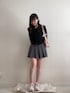 襟付きのブラウスでキレイめに✨ くろとピンクの組み合わせが最近のお気に入り🤍 カバンはユニクロのラウンドミニショルダーバッグ スカートはGUのプリーツスコート