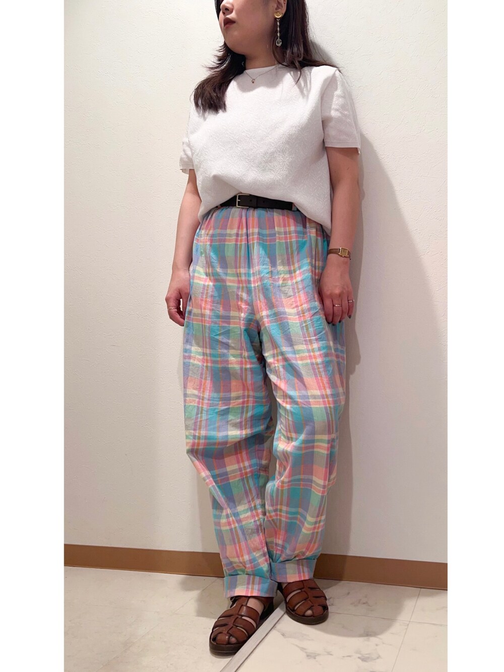キレイな色のマドラスチェック イージーパンツをメインにしたコーデ 最近本当に暑すぎて頑張れないので ラクチンでコーデが完成するのは本当にありがたい🥺 いつも見てくださりありがとうございます♡ ほぼ毎日オフィスコーデを上げています! いいね、お気に入り、フォローしていただきますと とても嬉しいです◎