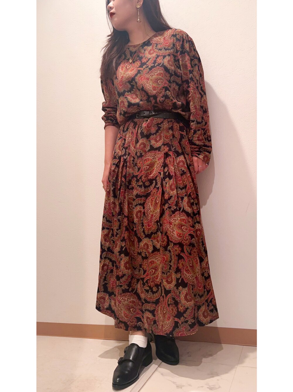 古着!って感じのワンピースに メンズライクなドレスシューズを合わせたコーデ いつも見てくださりありがとうございます♡ ほぼ毎日オフィスコーデを上げています! いいね、save、フォローしていただけますと とても嬉しいです◎