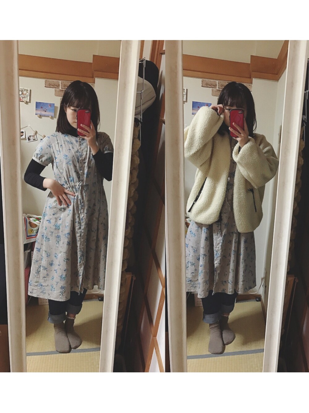 *170112 . 今日のお洋服◡̈✩ . 冬なので使っていなかった半袖のワンピースを タートルネックに重ね着して着てみた◎ . .