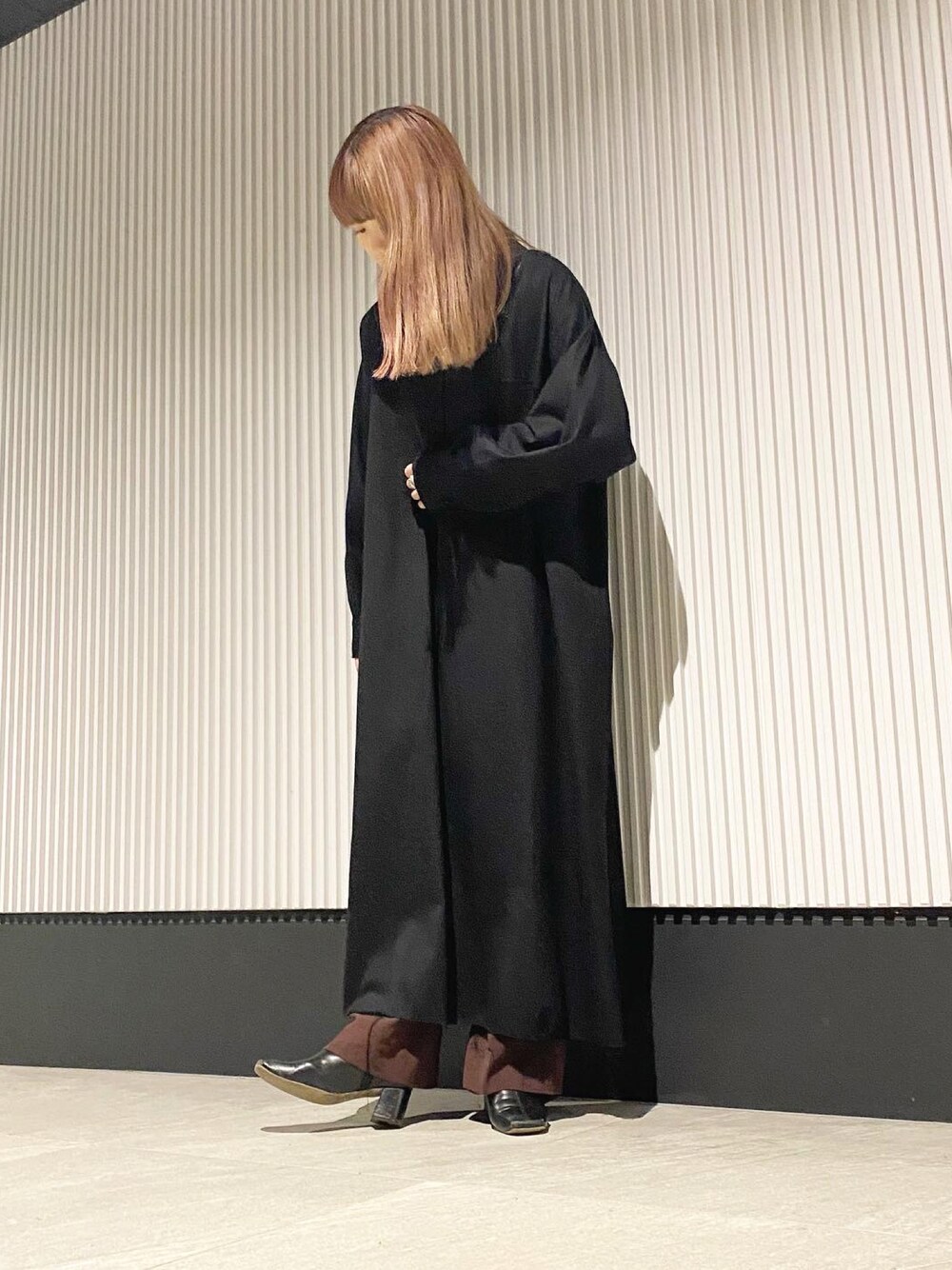 コットン素材なのでフォーマルすぎないワンピース⭕️一枚でも着用できるが、フレアパンツなどパンツとレイヤードしてもバランスがキレイな切りっぱなしのワンピースです😊