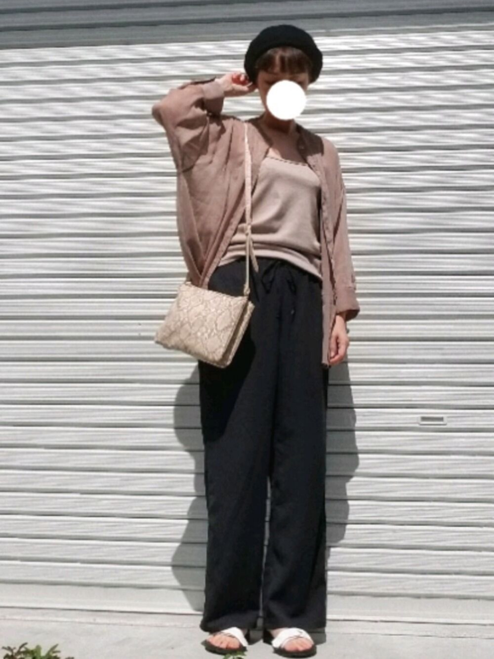 トップスはシアーシャツとキャミがセットだった☆ GUのこのサラサラテロンテロンのパンツは買って正解⭕✨ めちゃ穿きやすい!
