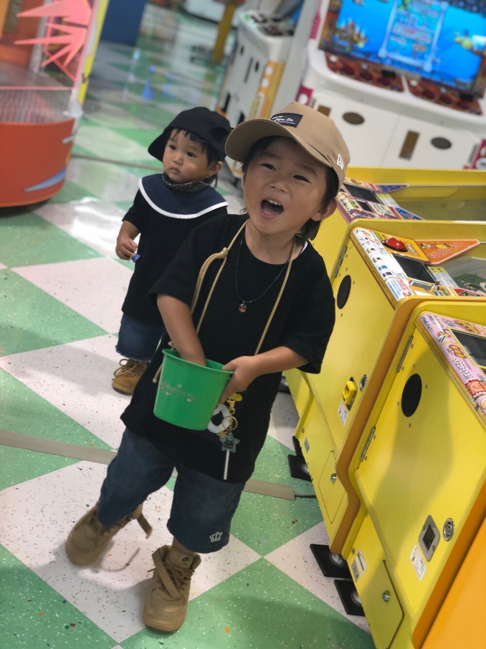 аотмайのキャップ「オンスポッツ別注 ニューエラ キッズ キャップ スナップバック 9FORTY BLACK PATCH NEW ERA KIDS」を使ったコーディネート