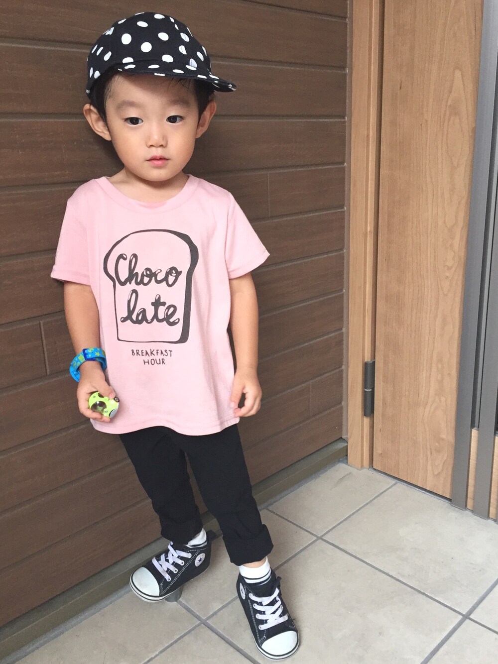 ピンクのTシャツ✨ 本当は女の子用みたいだけど、可愛い色だしSALEだったからGET😅 肌触りも良い感じ。