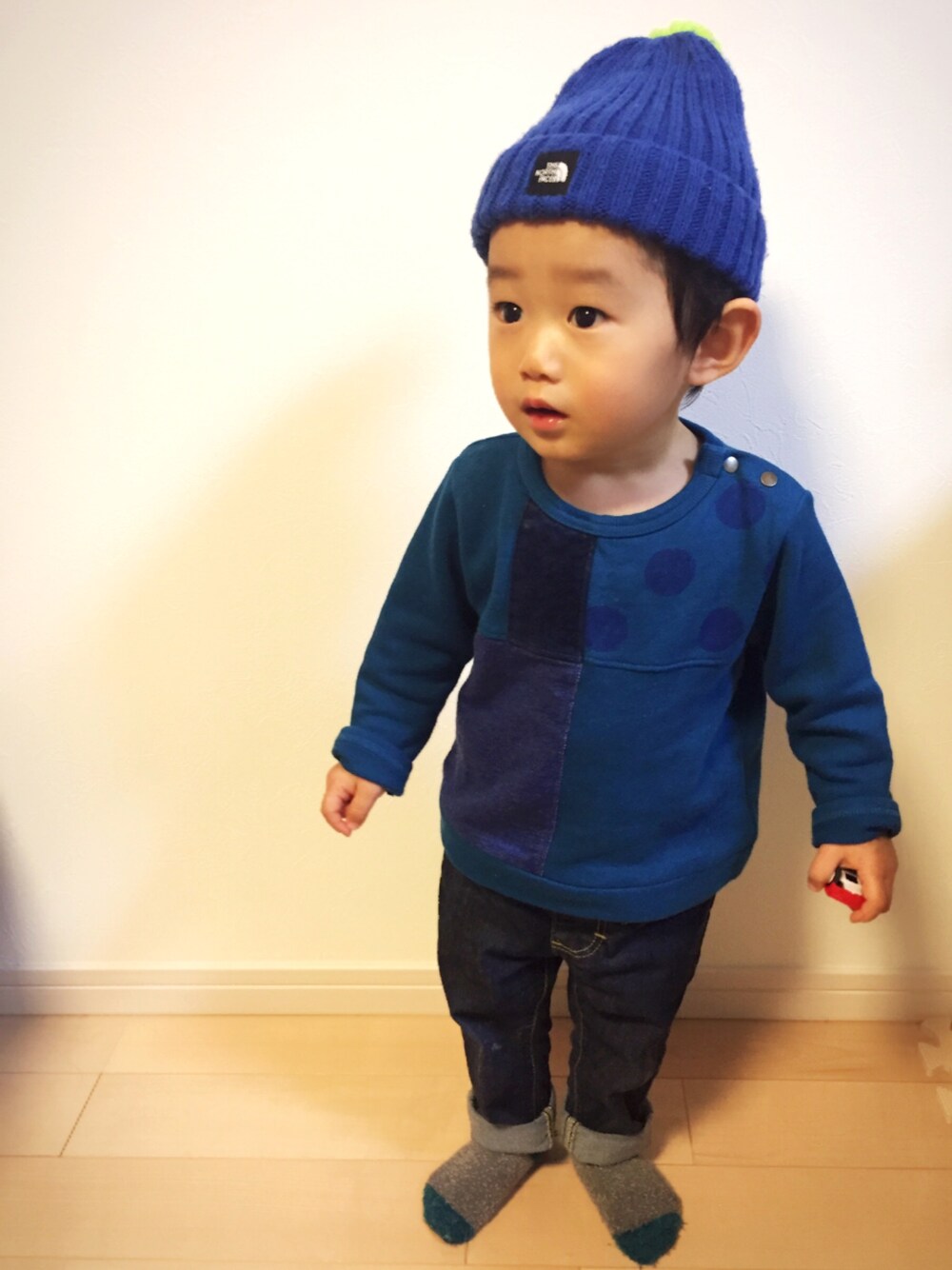 今日はブルーコーデ✨ トップスのトレーナーは後ろにもタグが付いてて可愛いデザイン😍