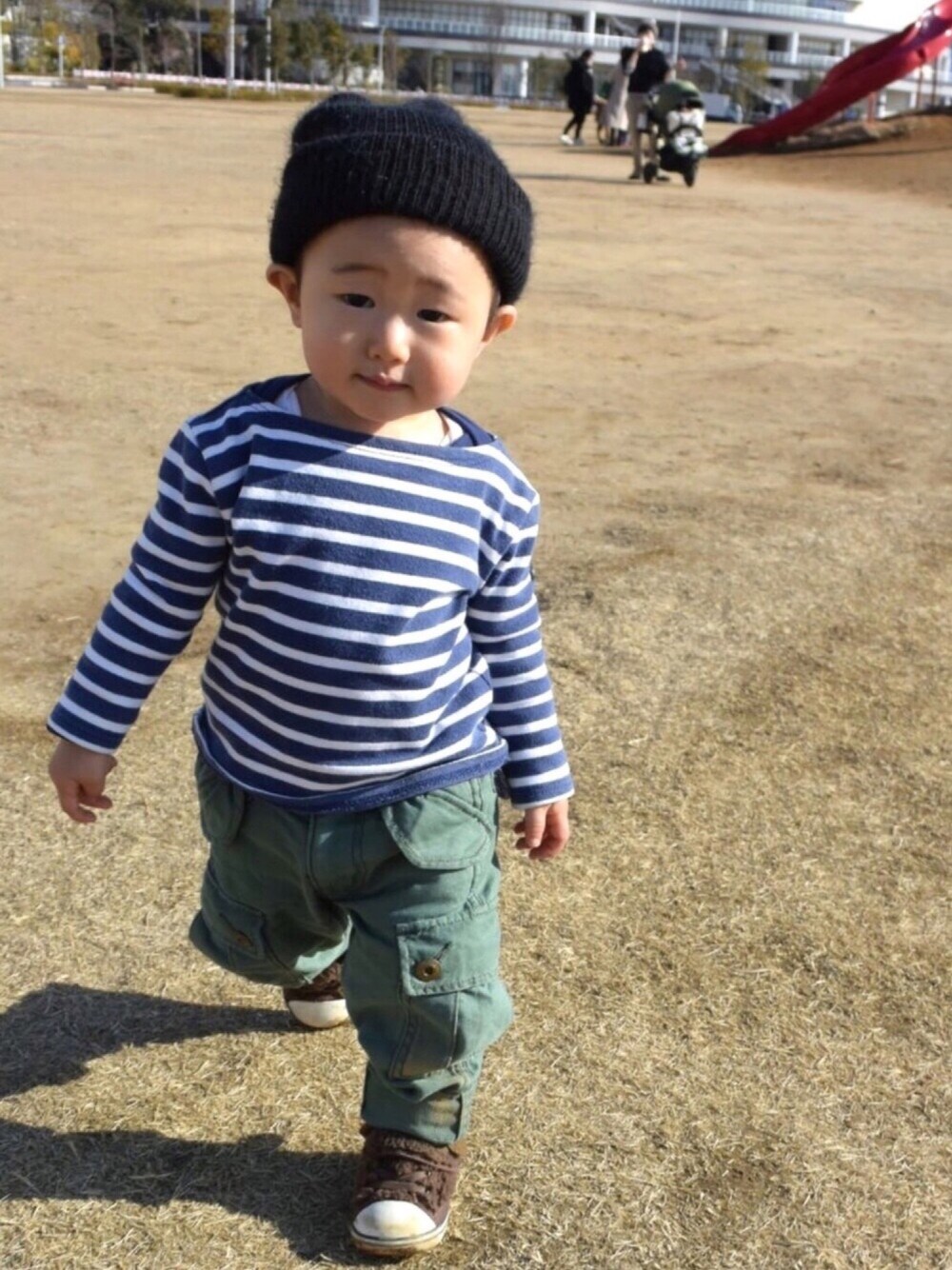 いつかの暖かかった日のコーデ。 滑り台を20回位すべり、パンツは土だらけに。。。 ここの滑り台が一番好きみたい♡