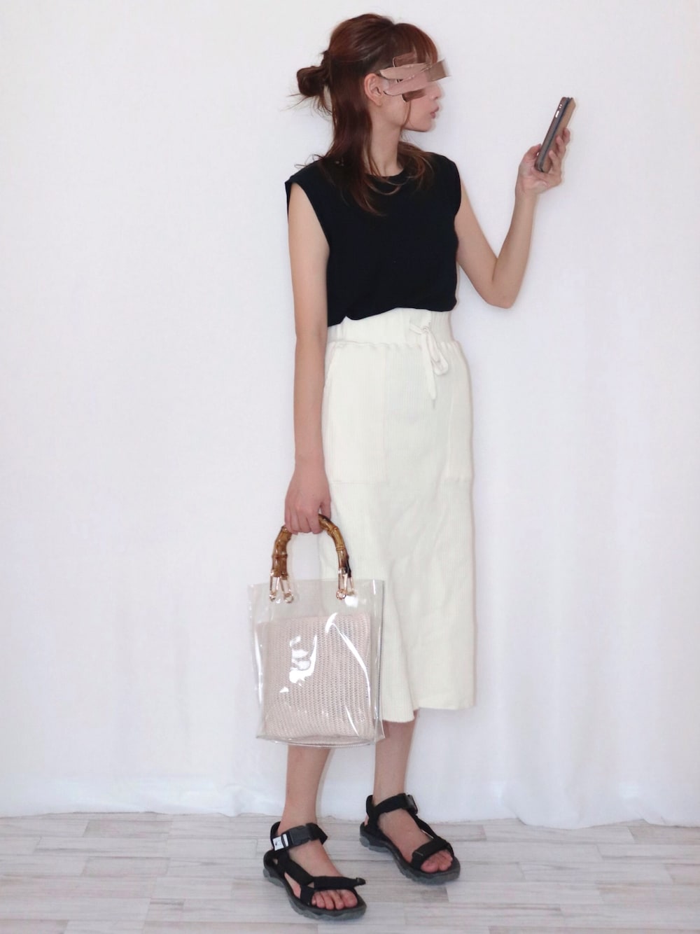 こんにちは︎☺︎ 今日はモノトーンですっきりと。 このタンクトップは形が綺麗だからお気に入り。 クリアバッグをアクセントにしました〜🦉 最近蒸し暑いですね💦 体調崩さぬようお気をつけください( ¯﹀¯ )