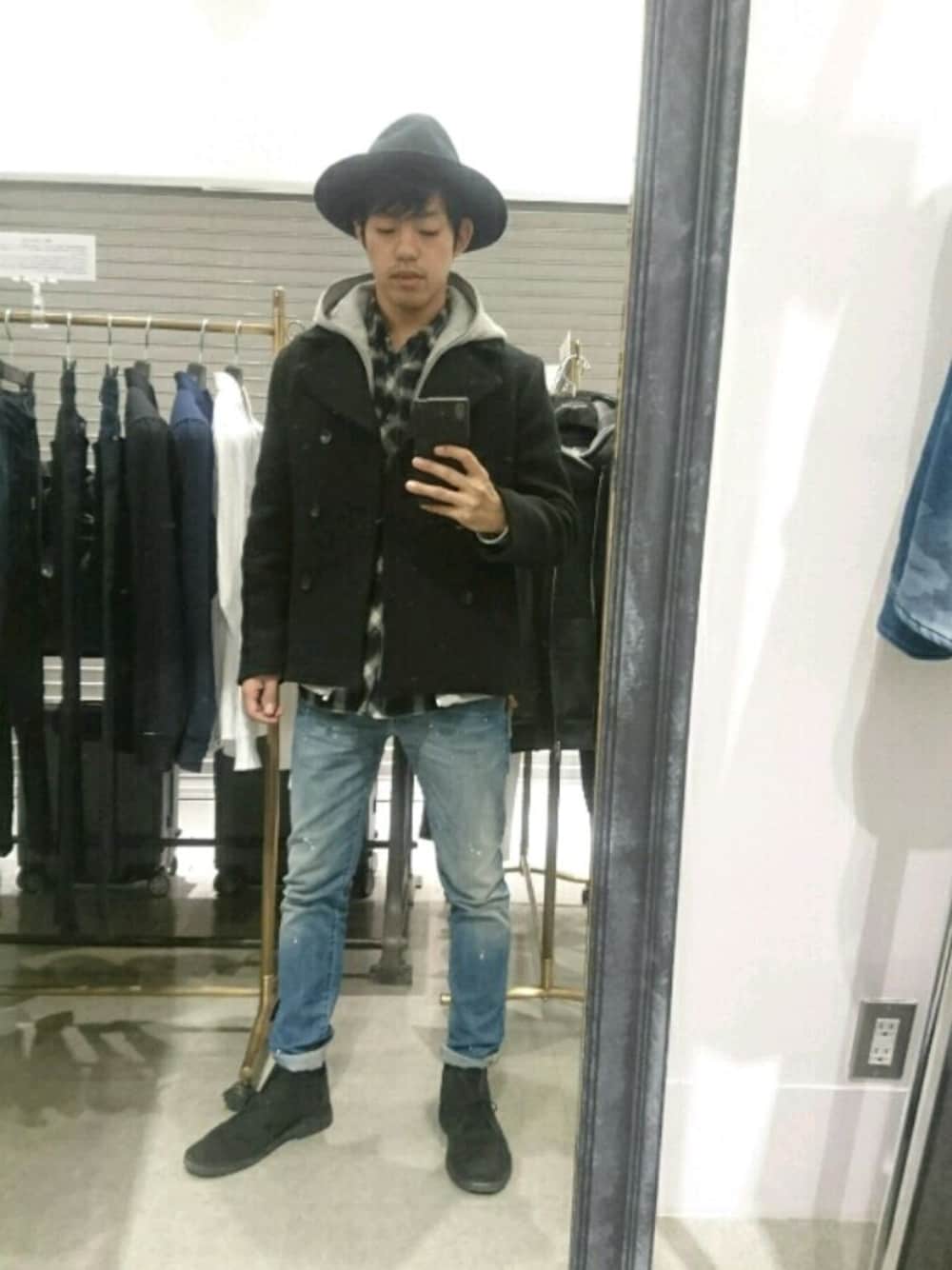 ごちゃごちゃしてますが、ハットとブーツを同色にすることで、統一感意識してます! ピーコートを脱いでも様になるので、個人的に好きです(^-^)v