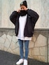 aoyo_oyoのブルゾン「FIRST DOWN/ファーストダウン リバーシブルボアフリースブルゾン / ビッグシルエットボアフリース / カモ柄」を使ったコーディネート
