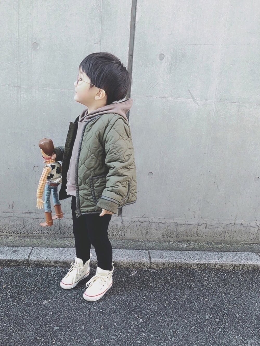 keee◡̈♥︎のミリタリージャケット「【coen キッズ / ジュニア】2WAYキルティングジャケット/ブルゾン/コート(100~150cm)」を使ったコーディネート