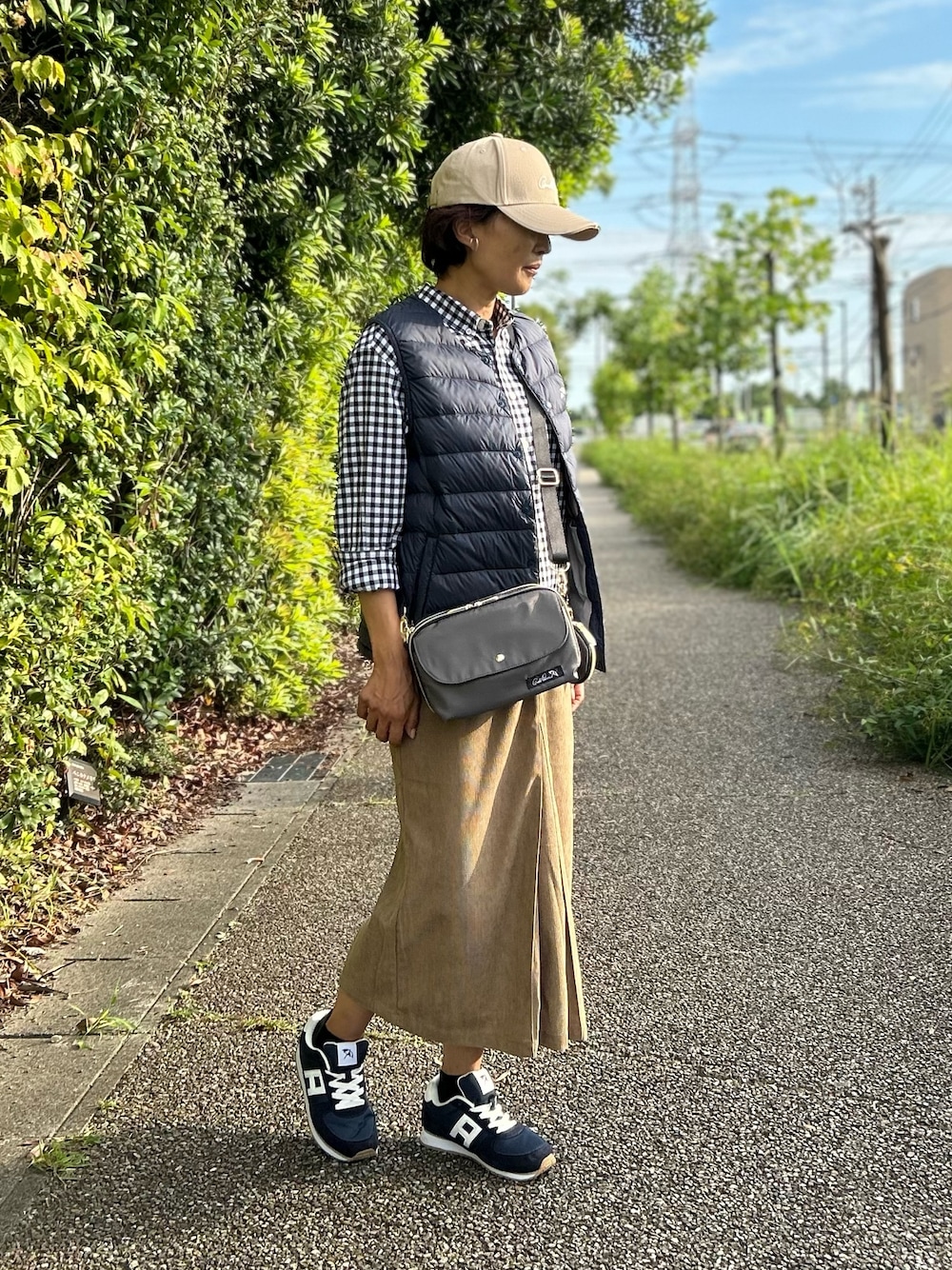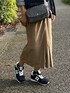 今年も定番のインナーダウンベスとに コーデュロイスカートを合わせて みました。お出かけにもぴったり。