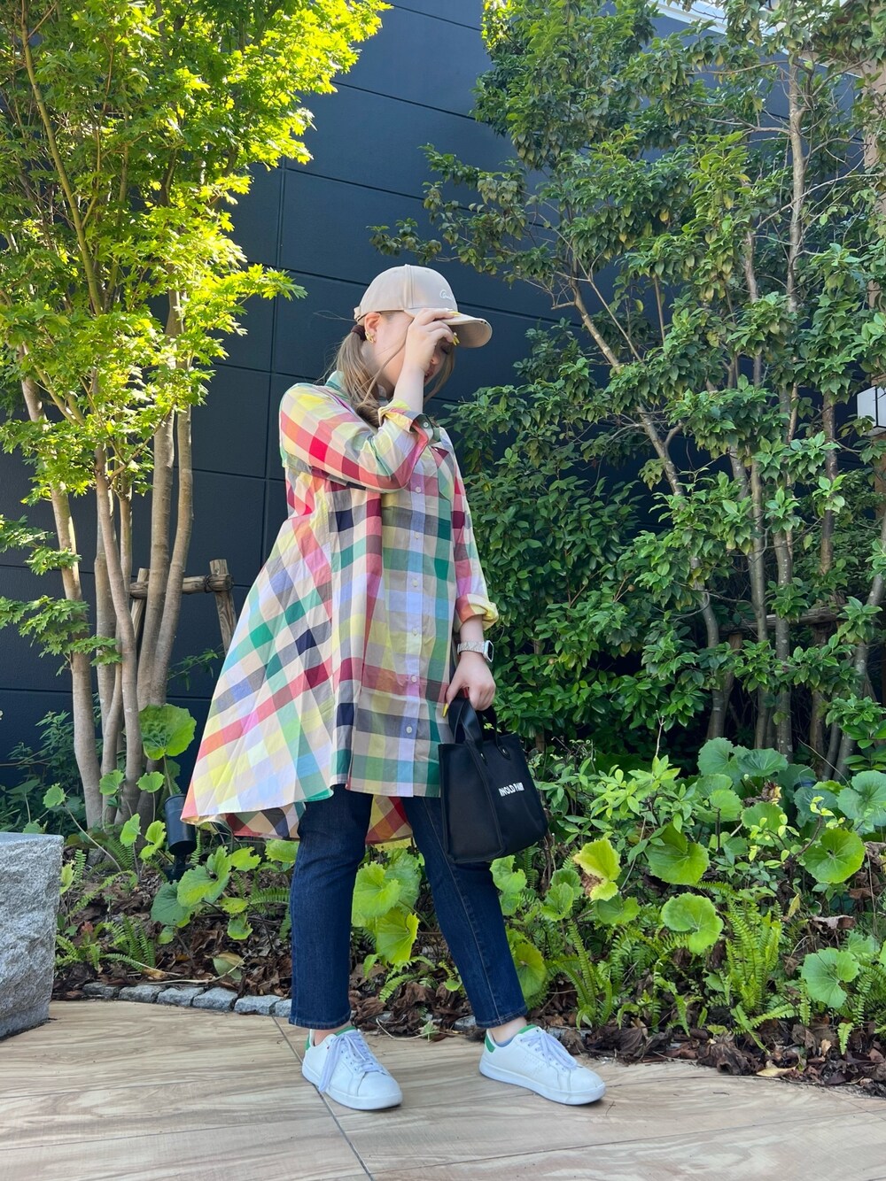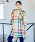 大きなチェック柄が目を引き、コーディネートに華やかさをプラスしてくれます(^^)後ろのギャザーがとてもかわいい1枚です♪