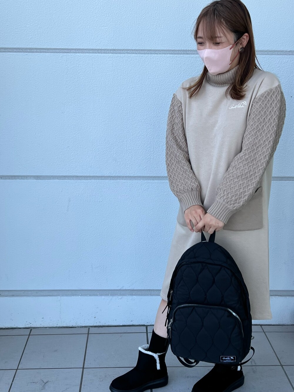 ワンピースは切り替え部分がニットになっていて大きなポケットが可愛く、ショートブーツを合わせて秋のお出掛けコーディネートに^ ^
