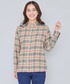 パーマーチェックシャツに白のボアベストを合わせて、少し肌寒くなってきた今の季節にピッタリです^ ^ お子様の秋の行事やお出掛けにいかがですか🍁