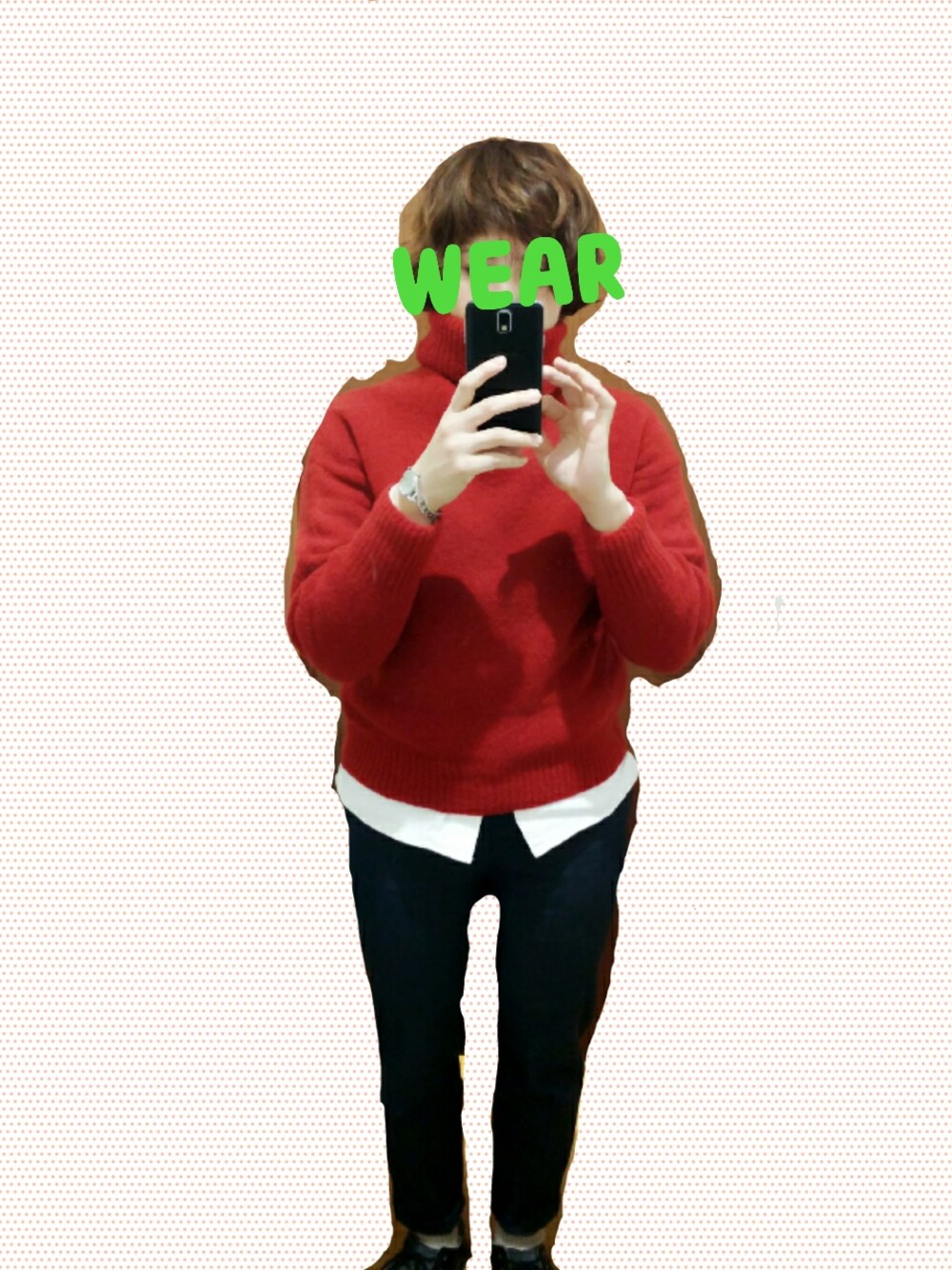 ニット:45R シャツ:ラルフローレン デニム:45R 靴:ビルケン 最近買ったニット あったかい