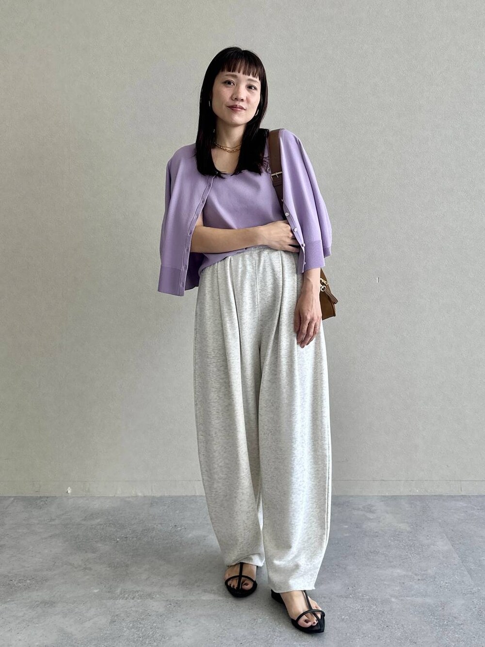 タイプ 骨格ウェーブ ブルベ夏 アラフォーママ パープル×キャメルのカラーコーデ ニットアンサンブルにスウェットパンツを合わせて、ラフな雰囲気にしました。 ニット 接触冷感素材で、ほんとに着た瞬間冷んやり!! サラッとしていて快適な着心地です。 タンクはネックラインしっかり開いているけど、下着は見えないシルエット。 ウェーブさんもすっきり見えるデザインなので、安心して着れます! スウェット 意外となんでも合わせやすくてお気に入り♡ ブラウスとかジャケットとかニットとか、いつも色々合わせてます。 体型カバーにもなるからお気に入り。 Instagram▶︎ インスタグラムも更新中です! 質問などお気軽にDMください♡ Staff board ▶︎