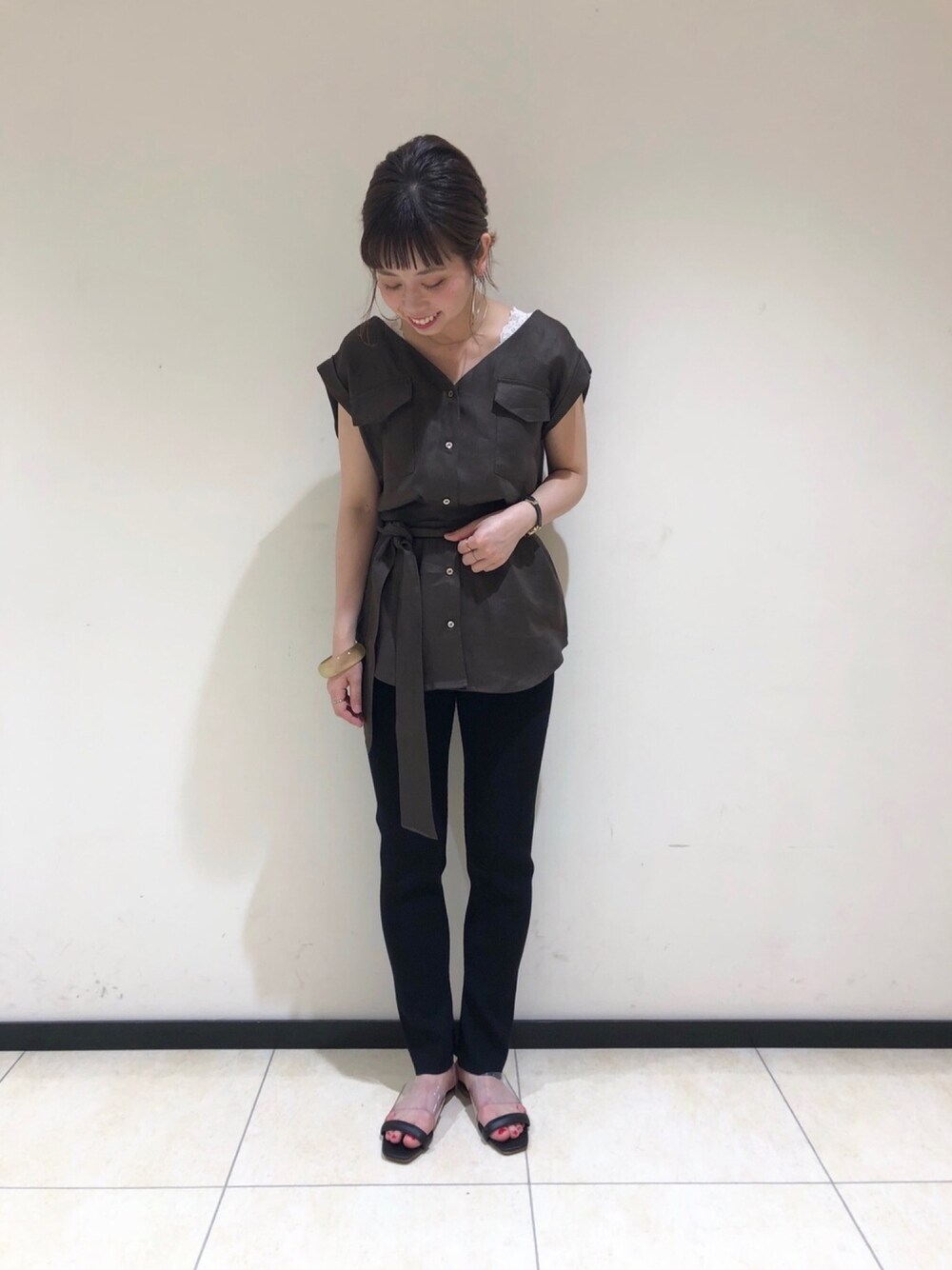 hikariのシャツ/ブラウス「LヘリンボンNCシャツSS 795826」を使ったコーディネート
