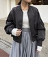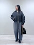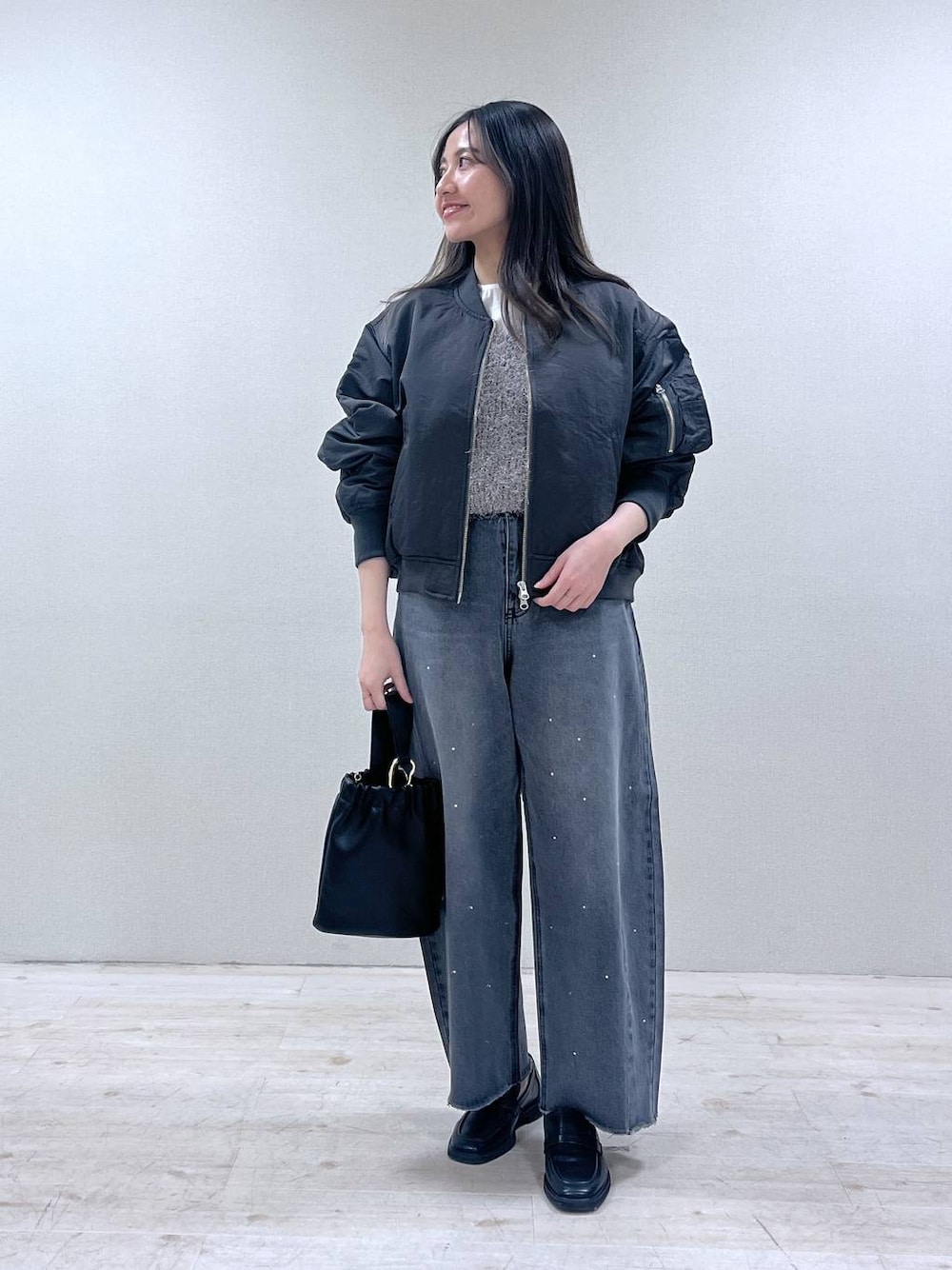 【MA-1】 ショート丈でスタイルアップできるMA-1です。 丸みのあるシルエットで女性らしく着られます。 【パンツ】 ラインストーンが可愛いデニムは、カーブシルエットでトレンド感のあるシルエットです。