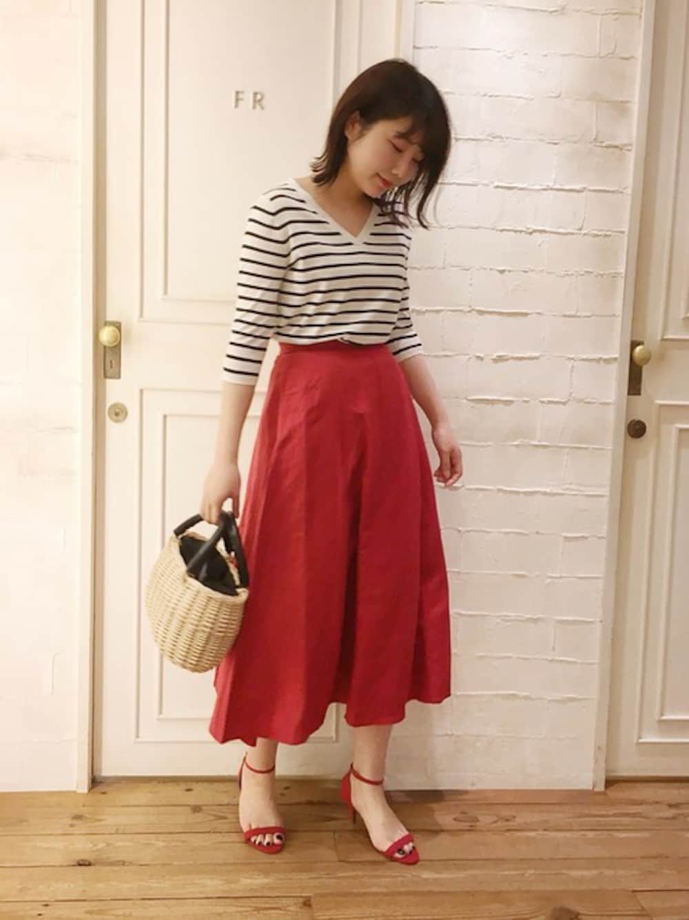 パキッとしたカラーも リネン素材ならナチュラルに★ ウエストがほっそり見えるスカートは全店大人気です!!