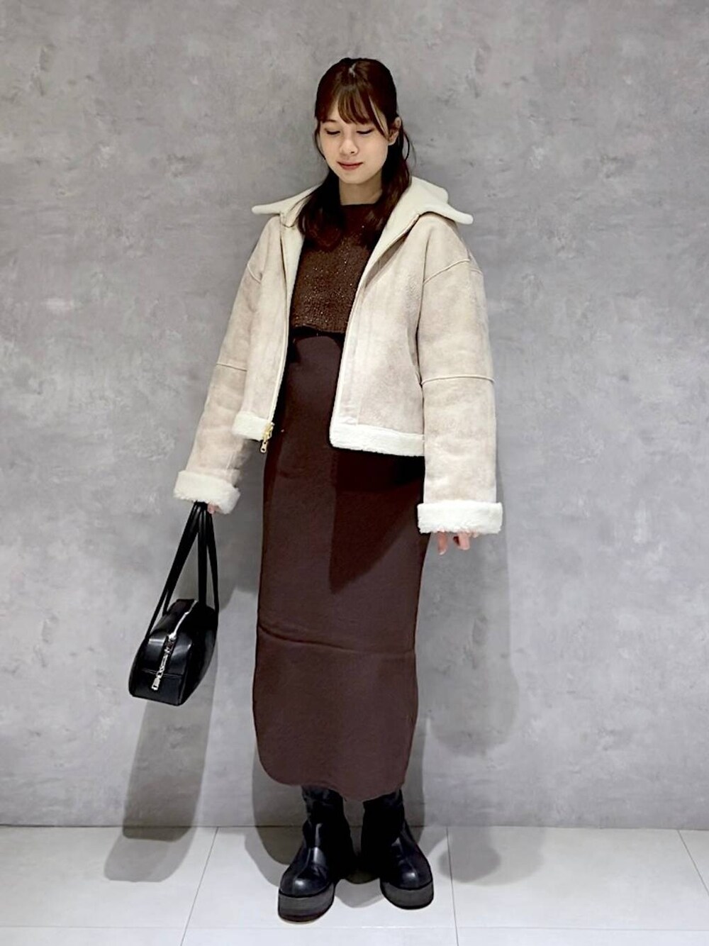 arisa.(apart by lowrys ルミネ池袋)のワンピース「ツィード2Pニットワンピース」を使ったコーディネート