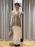 【ベスト】Fサイズ ふわふわな素材がとってもかわいいニットベスト! Vネックで開いてるので、ゆるっとしたシルエットですが着膨れせず、すっきりと着れます🤍 Fサイズだと、腰回りを程よくカバーしてくれる着丈になっています。 【ワンピース】 レースですが細身のシルエットなので、ラブリーにならずすっきりと大人な印象で着れます!ワンピースタイプのインナーもセットで付いているので、そのままでも着れちゃいます◎ インナーをとって、パンツをレイヤードするのもかわいいです。
