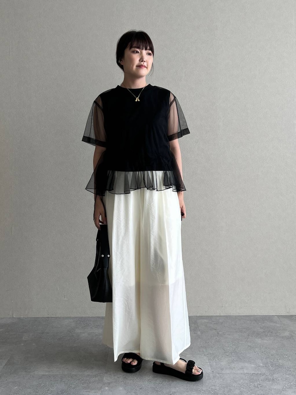 【タイプ】 骨格ストレート(肩幅狭い・腰回り太め) ブルベ ウィンター ヒップ周り 98cm! 【コーデポイント】 モノトーンでまとめたスタイリング トップスはカットなので通気性がよく暑い日にもピッタリ!! シアー感のあるパンツと合わせれば暑い夏も乗り切れる綺麗めカジュアルコーデの完成です!! 【お気に入り登録のご案内♡】 いいね!と思っていただけたら、ぜひ♡マークを押してお気に入り登録をよろしくお願いします! どんなコーディネートが人気なのか分析ができるので嬉しいです! →新作の最新情報も更新してます!!